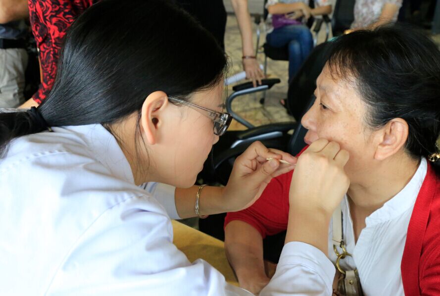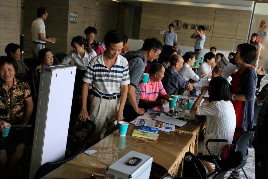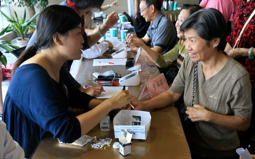 下午三點(diǎn)開始,老人們陸陸續(xù)續(xù)“登”上財(cái)富中心43樓會(huì)所參觀,在鷺江道上的地標(biāo)性建筑上俯瞰城市美景。繼而在工作人員的引導(dǎo)下,前往23樓品嘗精美茶點(diǎn)、體驗(yàn)貼心的健康義診。新開元醫(yī)院的專業(yè)醫(yī)師為老人們免費(fèi)測量血壓,細(xì)致咨詢飲食習(xí)慣,叮囑注意事項(xiàng);口腔科醫(yī)師為老人們免費(fèi)檢測口腔健康,并提供牙齒保養(yǎng)和口腔疾病預(yù)防和治療的建議;眼科醫(yī)師為老人們提供白內(nèi)障裂隙燈篩查、視力篩查,關(guān)心老人的用眼衛(wèi)生和視力情況;除此之外,現(xiàn)場的抽血體檢和健康咨詢服務(wù)也深受老人們的歡迎。