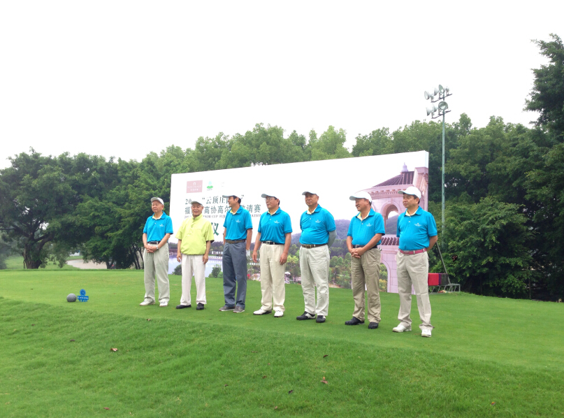 上午11時(shí)50分,廈門市工商聯(lián)主席、高爾夫球協(xié)會(huì)會(huì)長(zhǎng)、恒興集團(tuán)董事長(zhǎng)柯希平致辭,福建省市老領(lǐng)導(dǎo)賈錫太、陳光普、楊彪、黃江、翁云雷、陳建壽,福建省高爾夫球協(xié)會(huì)主席陳忠和、廈門市高爾夫球協(xié)會(huì)會(huì)長(zhǎng)柯希平等八人齊聚綠蔭場(chǎng),華麗開桿,拉開2015“云頂莊園杯”福建省高協(xié)高爾夫球邀請(qǐng)賽的序幕。