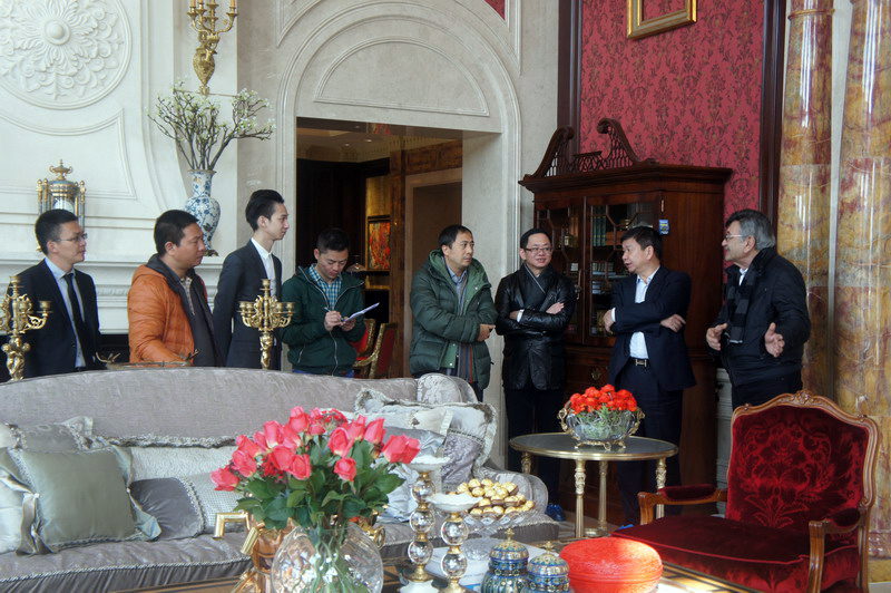 葛喬治先生對高端人士的居住有著更為深入的見解,在歐洲國家莊園作為皇室、貴族的第一居住所,不僅追求雍容和奢華的古典傳承,更對空間的舒適度、裝飾材質(zhì)對指尖的感觸,都有著更為細致的要求。葛喬治對樣板間窗簾色彩搭配、桌椅的搭配排列,甚至是沙發(fā)的高度都給予了細節(jié)的建議,并親自調(diào)整。