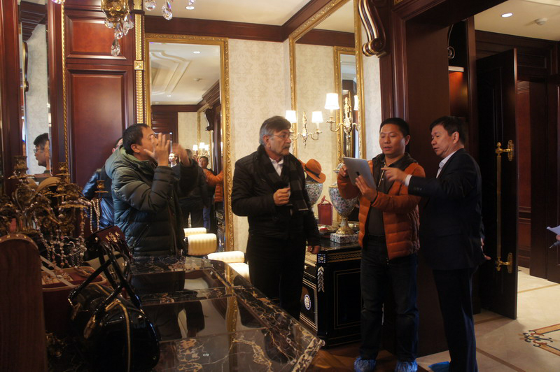 目前,云頂莊園樣板房已基本完工,作為首席設(shè)計師葛喬治先生也于20日親臨現(xiàn)場。雖然已經(jīng)無比熟悉,但進到真正的建筑里,走過樣板房的每一層、每間房、每一件家具、每一幅畫……對于自已的作品從設(shè)計稿到真實呈現(xiàn)的每個細節(jié)醉心凝視,滿意之處連稱“NICE”,并對整體的效果給予很高評價。