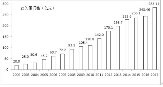 ? ? ? ? 2017中國企業(yè)500強(qiáng)的營業(yè)收入總額首次突破60萬億元,達(dá)到了64.00萬億元,相當(dāng)于去年我國GDP總額的86%。榜單上,營業(yè)收入超過1000億元的共有157家,較上年增加5家,繼續(xù)擴(kuò)容。其中,國家電網(wǎng)公司成為中國唯一營業(yè)收入超過2萬億元的企業(yè),僅次于美國沃爾瑪,是世界第二大企業(yè)。