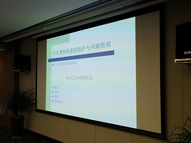 ? ? ? ? 在日常生活中,身份證是經(jīng)常被用來(lái)辦理各項(xiàng)業(yè)務(wù)的憑證,但這也存在著個(gè)人身份信息泄露的風(fēng)險(xiǎn)。近年來(lái),幾乎每個(gè)人每天都會(huì)接到很多“騷擾”電話,推銷甚至詐騙電話防不勝防,據(jù)統(tǒng)計(jì)78.2%的網(wǎng)民個(gè)人身份信息被泄露過(guò)。針對(duì)這一問(wèn)題,12月6日人力資源部聯(lián)合法務(wù)部特別舉辦了一場(chǎng)關(guān)于防范個(gè)人信息安全的知識(shí)講座,由法務(wù)經(jīng)理蘇中發(fā)主講,通過(guò)諸多生動(dòng)案例,深入淺出地介紹了個(gè)人身份信息被泄露的危害和防范技巧。