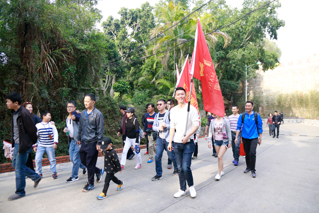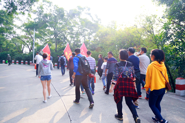 ? ? ? ? 上午8點15分,參加登山祈福的員工在仙岳山腳下集合,恒興集團董事、副總裁孔宇峰、資產管理部總經理盧海和資產管理部各版塊負責人、部門員工及員工家屬等三十人參加了本次登山活動。迎著晨曦,沐浴著山間清新的氣息,登山團隊在一片歡聲笑語中開始了攀登。在登山過程中,大家一邊爬山一邊欣賞美麗景致一邊互相交流溝通,交談聲、笑聲、歡呼聲此起彼伏。印有“廈門恒興集團”、“廈門財富中心”、“云頂莊園”的三面logo旗幟在天空飄揚,形成了登山沿途一道亮麗的風景線。