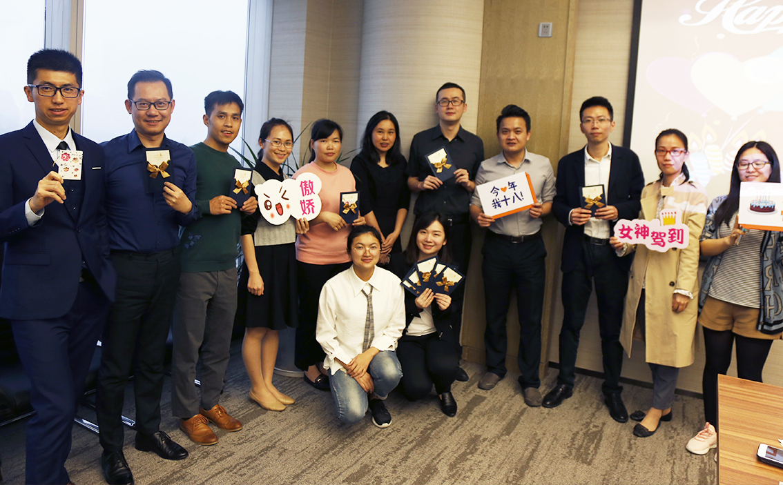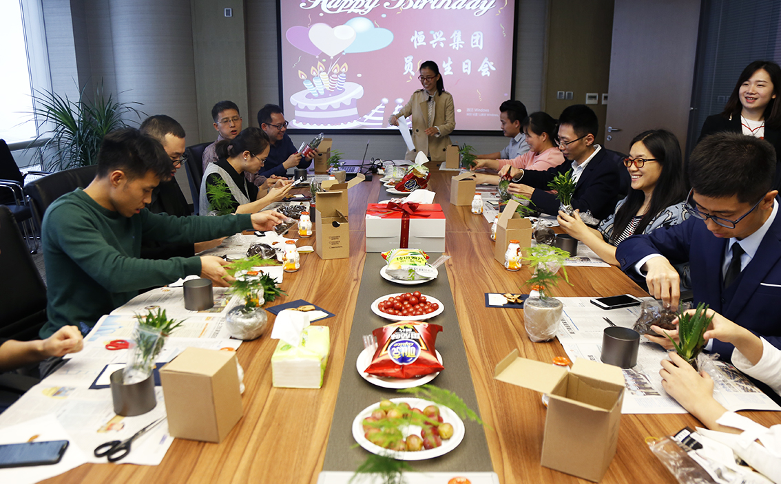 3月29日下午4點(diǎn)45分,隨著現(xiàn)場(chǎng)歡樂(lè)的音樂(lè),20余名受邀前來(lái)參加生日party的壽星歡聚在41層大會(huì)議室。隨著主持人的開(kāi)場(chǎng)介紹,開(kāi)啟了第一季度員工生日會(huì)。活動(dòng)現(xiàn)場(chǎng),辦公室主任吳勇慧為壽星們送上生日賀卡,并感謝所有壽星對(duì)公司所作出的貢獻(xiàn)。接下來(lái)進(jìn)入DIY綠植環(huán)節(jié),各位壽星合力搭檔把一株株小綠植種進(jìn)了小黑罐里頭,并給小綠植撒上陶粒作為裝飾,播種希望的同時(shí)也收獲了歡樂(lè)。緊接著進(jìn)入了生日會(huì)的重要環(huán)節(jié):吹蠟燭、嘗蛋糕、許心愿,所有壽星齊唱生日快樂(lè)歌后,由壽星代表許麗靜為大家切分蛋糕,在品嘗蛋糕和寫心愿卡環(huán)節(jié)時(shí),每位壽星臉上都洋溢著歡樂(lè)和甜蜜的笑容。最后,聚焦的鏡頭留下了本次生日會(huì)壽星們的身影,集體合照為本次生日會(huì)畫上了一個(gè)完美的句號(hào)。鏡頭上員工們的歡樂(lè)笑臉,正是公司構(gòu)筑一個(gè)充滿關(guān)愛(ài)的恒興大家園的溫馨畫面!