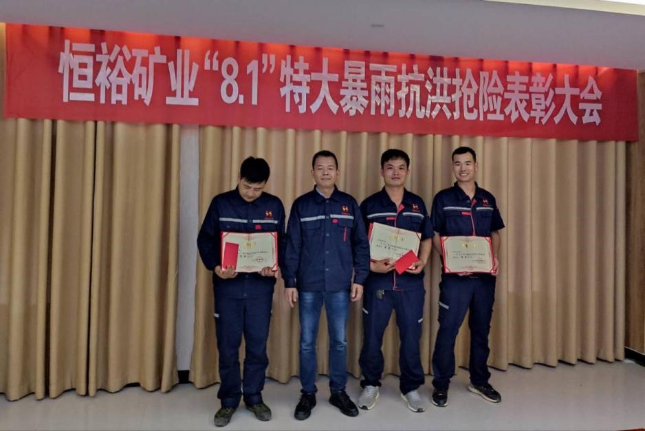隨后,公司常務(wù)副總經(jīng)理羅賢仁宣讀了《恒裕公司關(guān)于表彰“8.1”特大暴雨抗洪搶險(xiǎn)先進(jìn)個(gè)人和積極分子的決定》,對(duì)莊振東、王成啟、陳金峰等24名員工進(jìn)行通報(bào)表彰;公司董事長(zhǎng)柯銀輝和總經(jīng)理羅耀坤分別為受表彰人員頒獎(jiǎng)并合影留念;先進(jìn)個(gè)人代表陳金峰發(fā)表了表彰感言。