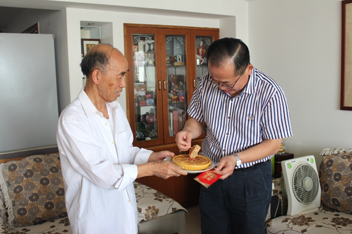 現年70多歲的集團公司原董事、審督委主任唐予華,和老伴相互照顧。他們用一大桌的茶點水果迎接慰問小組。唐予華介紹,退休之后,他愛上了運動。每天在家堅持跑步,身體各項指標都很正常。他說,現在生活條件、醫(yī)療條件都好了,身體是最重要的。他還告誡年輕人,手機不能看太多。