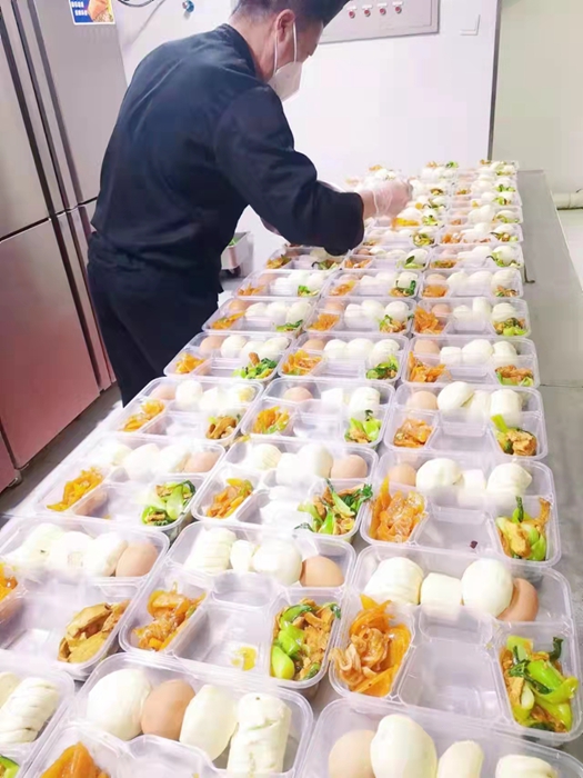 清掃客房的3位工作人員,每日清掃客房129間,對酒店公共區(qū)域和客房進行無死角的消毒消殺,為入住客人和抗疫一線人員提供安全、整潔的住宿環(huán)境;廚房3位工作人員,每日準備營養(yǎng)早餐260余份,克服疫情時期物資供應的重重困難,對每一天的早餐精心搭配,讓入住酒店的“大白”們,能夠補足能量,奔赴一線。? “你守護城市,我們守護你”,堅持為客人提供品質(zhì)服務和法式浪漫的酒店團隊,在艱難的時刻,用異常堅毅的力量,堅守在崗位上,奔波在酒店,為滯留客人提供家般溫暖,為抗疫逆行者提供優(yōu)質(zhì)的保障。