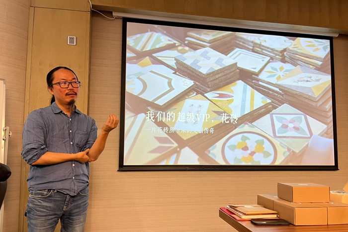 舊物倉是什么概念?它是許多有年代感的舊物件的集結(jié)地。起步時期,也囊括了廈門人無法割舍的花磚元素,楊函憬在分享會現(xiàn)場講述了他挽救十萬片花磚的眾籌故事。?
