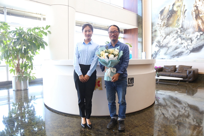 當天下午,集團前臺工作人員為楊函憬送上鮮花,迎接他的到來。會議室也布置了許多花磚元素的美食和冰箱貼,供到會同事品嘗和領(lǐng)取。