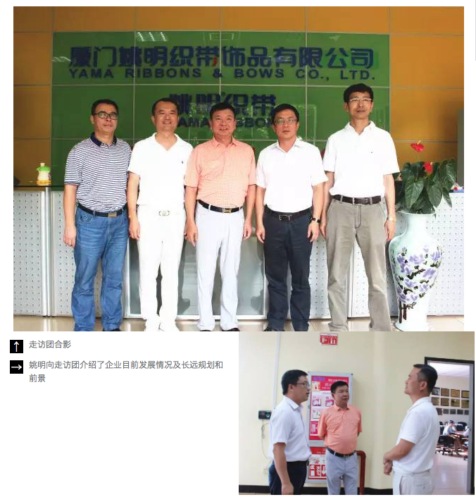 ? ? ?7月3日,廈門市工商聯(lián)(總商會)主席(會長)柯希平、黨組書記兼常務副主席陳永東、副主席邱加海、秘書長葉正輝走訪副主席企業(yè)廈門姚明織帶飾品有限公司、廈門市味友餐飲管理有限公司。